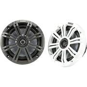 Elevate your boating experience with the Kicker KM Series 6.5" 65W RMS 4-Ohm 2-Way Coaxial Marine Speakers. These speakers are designed to deliver exceptional sound quality and durability, making them the perfect addition to any marine audio system. Whether mounted in the hull or in KICKER tower enclosures, the KM Series speakers bring your favorite tunes to life with loud, clear, and robust audio performance. Built to thrive in the harsh marine environment, they feature UV-treated injection-molded cones, Santoprene surrounds, and rustproof 316L stainless-steel hardware. With splash-and-spray-resistant sealed motors, cones, and Locking/Sealed Terminal Covers, the KM Series speakers are ready to withstand any weather conditions, ensuring endless fun on the water.