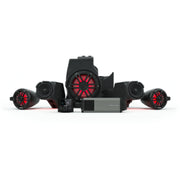 The Stage 4 is a 1,500-watt audio system that takes entertainment to a new level with higher performance, louder output, and greater clarity. This complete waterproof solution provides the ability to take your UTV into any environment. The subwoofer enclosure is vented to provide maximum bass performance and offers the ability to seal the vent when submerging the vehicle. The plug-and-play design requires minimal cutting or drilling by using OEM mounting points and features an easy-to-set-up "Rockford Fosgate" preset to optimize performance. The Color Optix control allows RGB color adjustment of speakers and rear moto-cans in addition to a Rockford Fosgate illuminated logo for a finishing touch to the passenger dash.