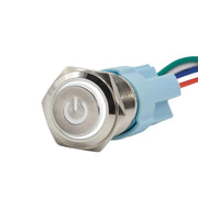 Sparked Innovation illuminated AL latching switch with power symbol (W, GR, PR)