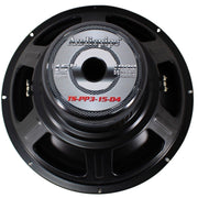 - 15" injection-molded polypropylene cone for deep, clean bass