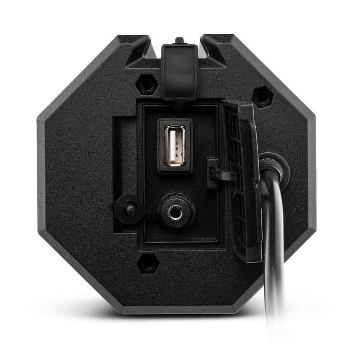 This DS18 SB24BT Sound Bar Speaker system is waterproof and perfect for audiophiles or the everyday music listener who wants to add a cool, LOUD, clean sounding, and slick set up in their car, off road, or marine application! This sound bar is sure to make a statement anywhere you go and will be heard loud and clear with the built in 600 watt amplifier. IPX5 rated for outdoor use. Clamping system easily attaches to a variety of applications.