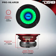 Get LOUD with DS18’s PRO-X6.4RGB, a 6.5-inch loudspeaker engineered for excellence. This loudspeaker combines high-power audio with a striking visual flair, making it the perfect upgrade for competitive and casual systems.