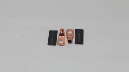 Pair of 4 Gauge 1/4 Inch Solder style Copper Ring Terminal Lugs w/ Heatshrink