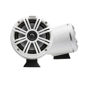The durable 6-1/2" poly woofers and balanced dome titanium tweeters cut through wind, waves, and engine roar to deliver big-time sound without annoying harshness. The swiveling clamp system is easy to install and lets you rotate the speakers to suit your situation, Point them aft for waterskiing or wakeboarding, or spin them in to enjoy your music when you're anchored out.