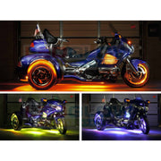 LEDGlow LiteTrike I Million Color LED Lighting Kits are designed to be compatible with Goldwing, Harley, Can-Am and other popular models. Illuminate your trike with 15 solid color options and lighting effects that combine to create custom patterns. Experience added safety when you ride at night and showcase the look of your trike at the same time with unrivaled LED lighting.